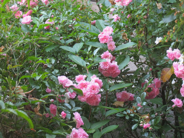 Thankfully, my sweet husband took up the slack and planted beautiful color pots (also now untrimmed and untended) to brighten the garden for me