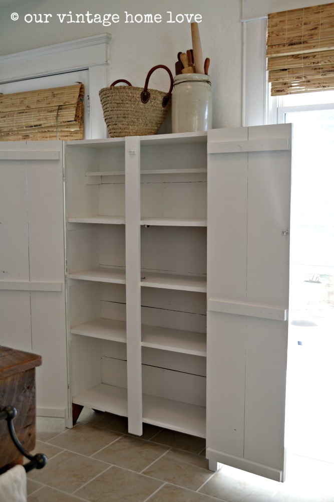 So, how ironic was it that my hubby came home with an amazing wood pantry/locker that he picked up at an estate sale. It was pretty rough but I thought it would be the perfect thing to store our jars of food that we will hopefully have this summer. :)
